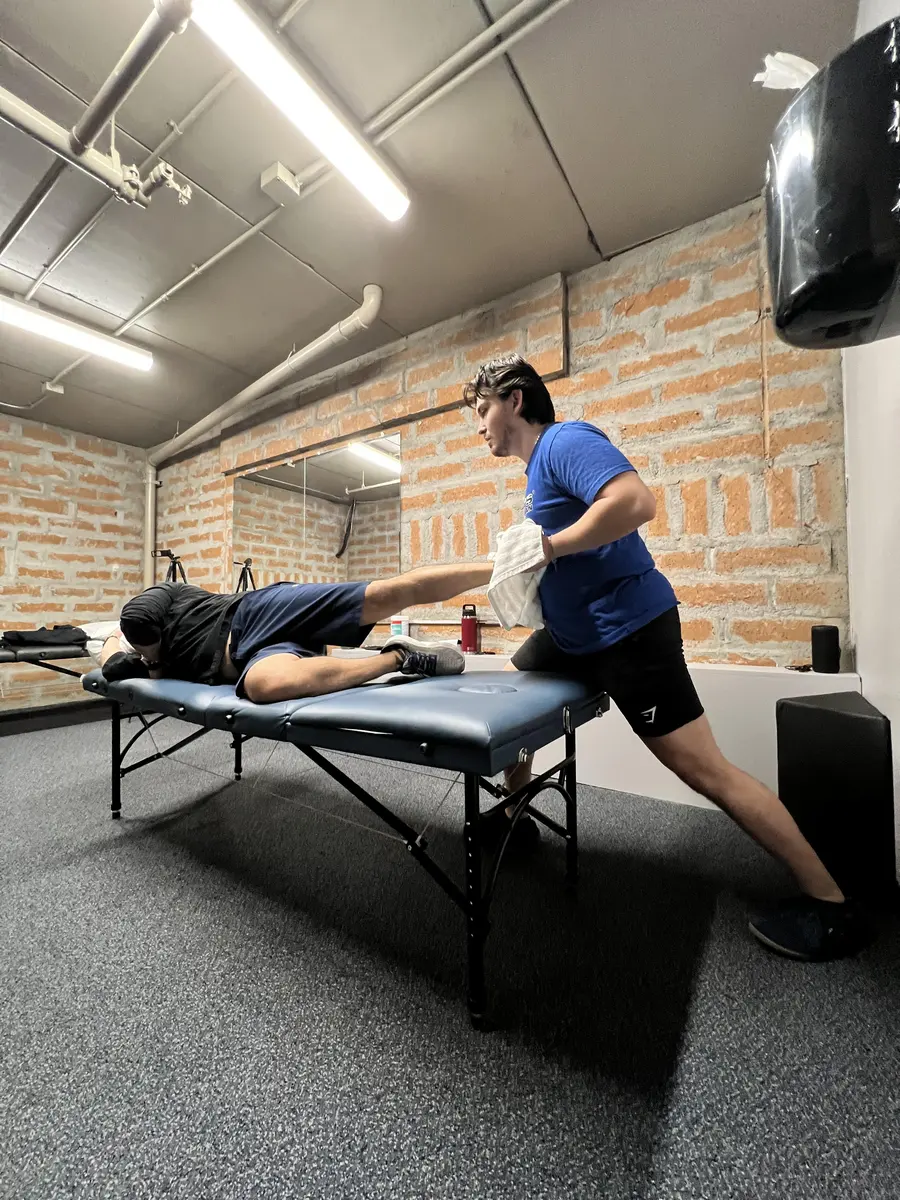 An athlete after a strongwoman competition in Bar Physical Therapy's clinic in Ahwatukee.